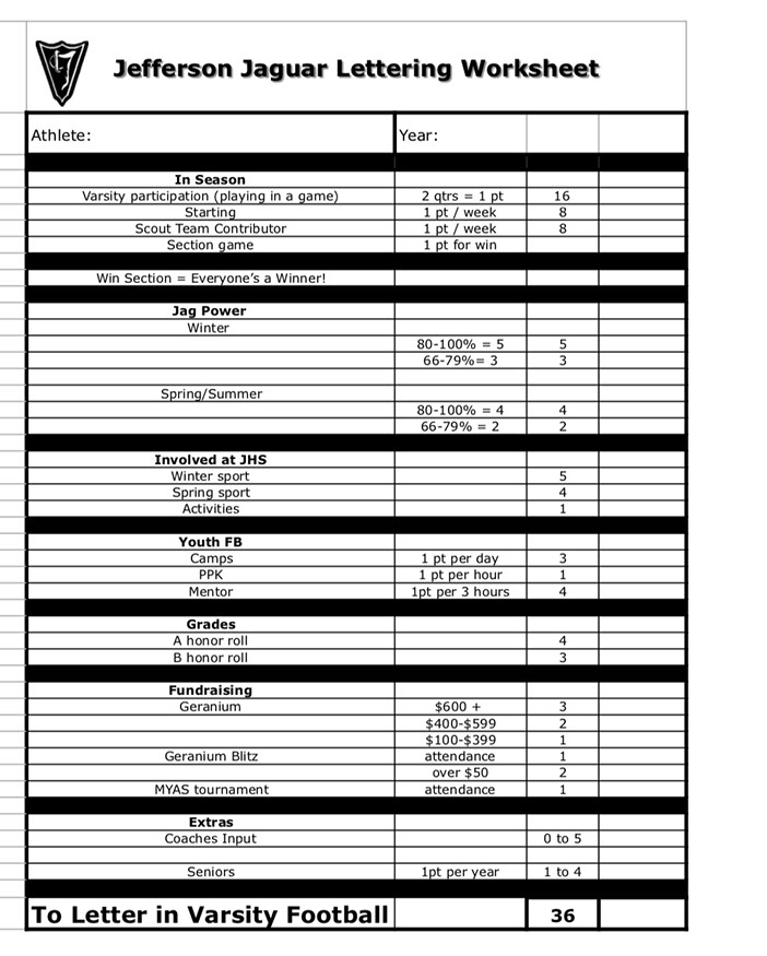 JEFFERSON FOOTBALL LETTERING POLICY
