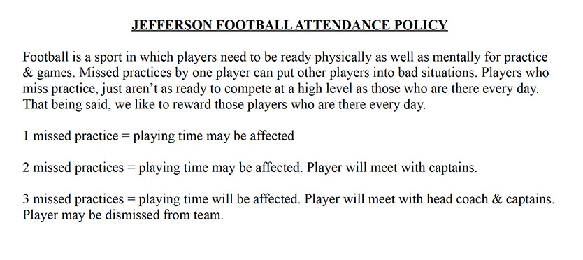 Jefferson Football Policies